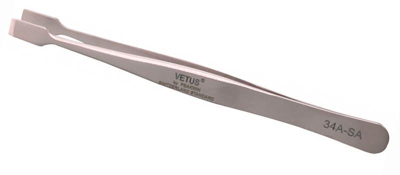 The 34A-SA tweezers have broad tips and are suitable for clamping small parts. The design of broad tips reduces the force on parts and won't cause damage to them.