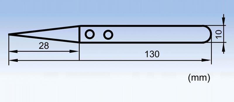 72-MZ high temperature resistant ceramic tip tweezers72-MZ high temperature resistant ceramic tip tweezers have a total length of 130mm and a tip length of 28mm. The tip and handle of the tweezer are fixed together using four screws, allowing the tip to be easily removed for replacement.