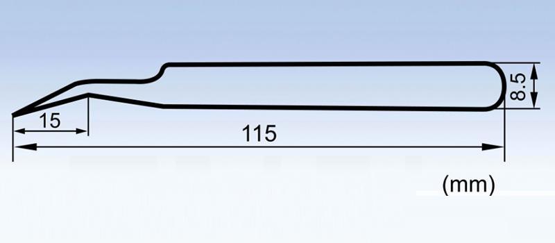 ESD-14 브로드 포인트 팁 스테인리스강 핀셋의 팁 길이는 30mm이다. 팁은 매우 얇기 때문에 핀셋은 블랙헤드와 눈썹을 제거하는 데 사용된다.